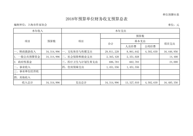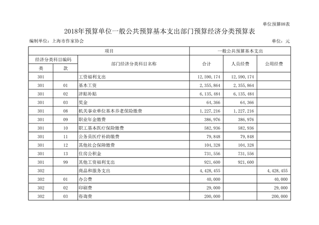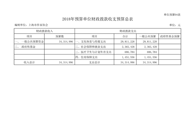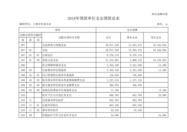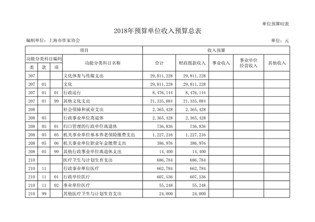 上海市作家協(xié)會2018年度部門預(yù)算(本級)