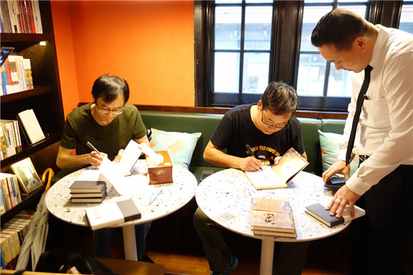 嘉賓們?yōu)樽x者簽名