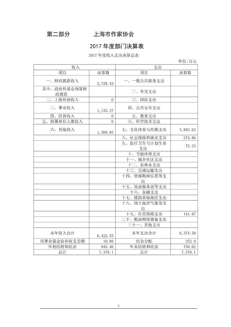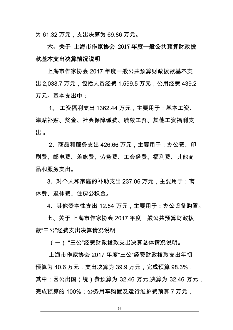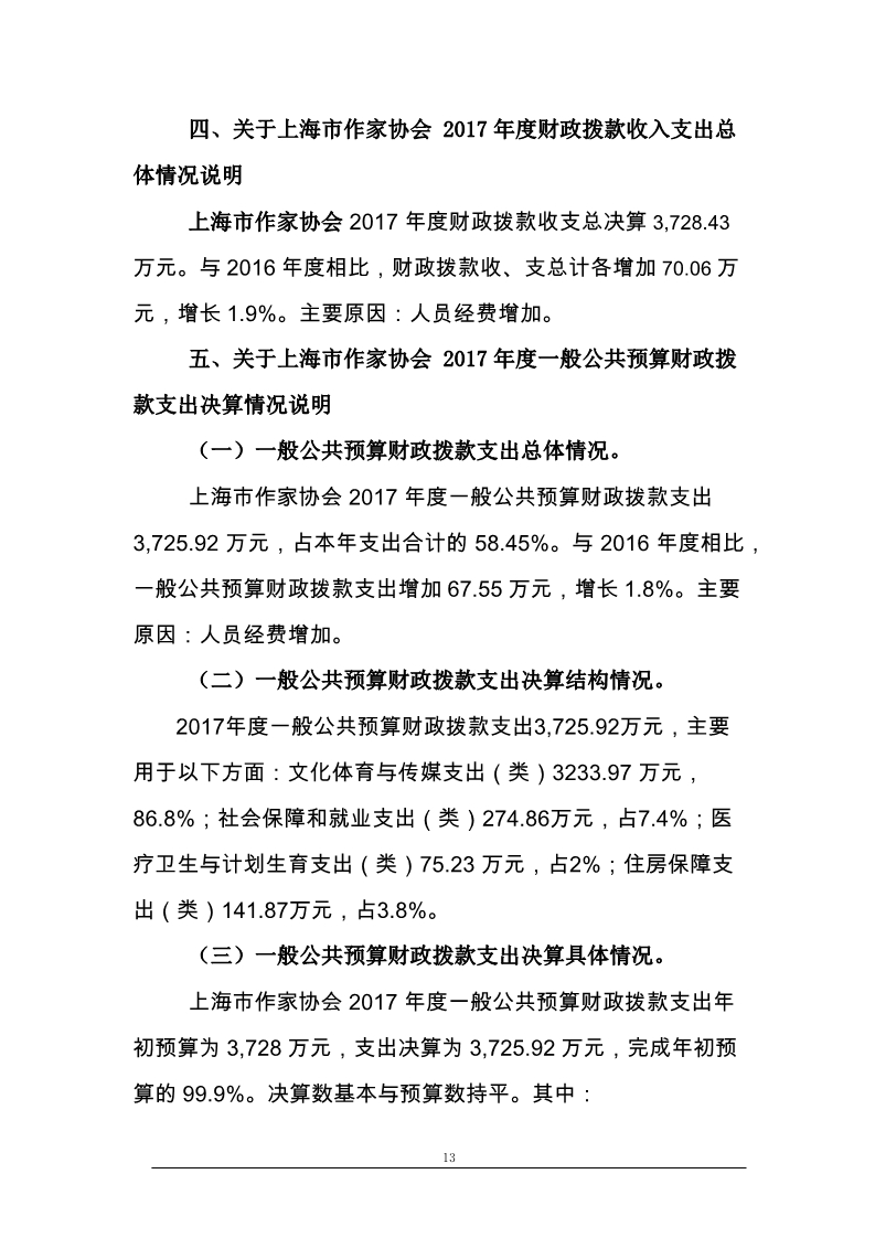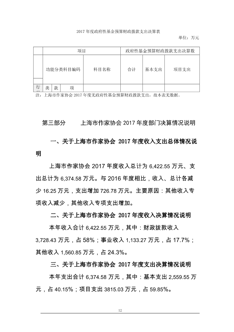 上海市作家協會2017年度部門決算