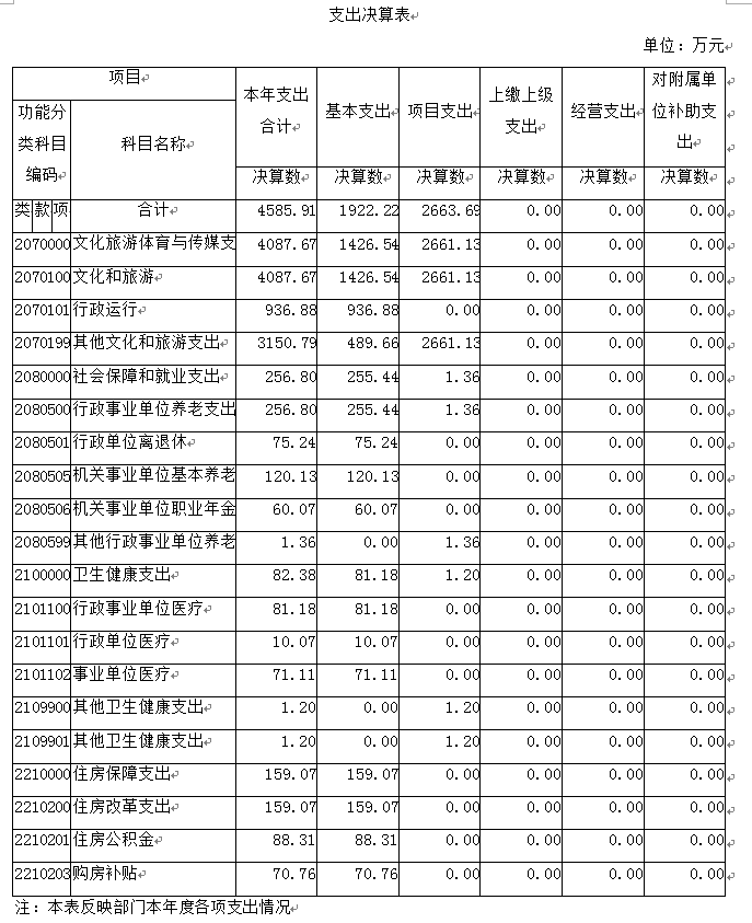 本年支出合計4,585.91萬元,其中:基本支出1,922.22萬元,占41.92%;項目支出2,663.69萬元,占58.08%。