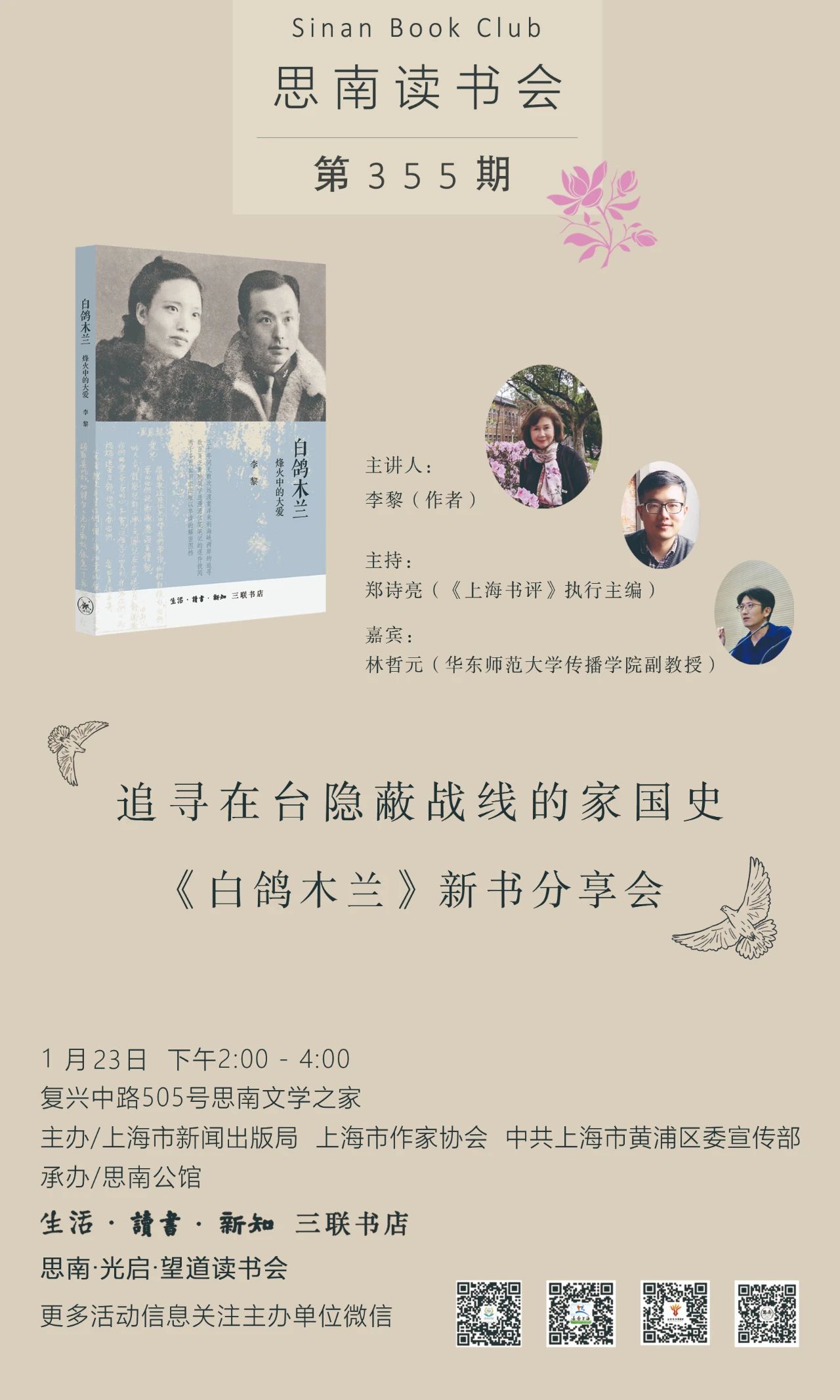 思南讀書會(huì)NO.355 | 追尋在臺(tái)隱蔽戰(zhàn)線的家國(guó)史 | 《白鴿木蘭》新書分享會(huì)